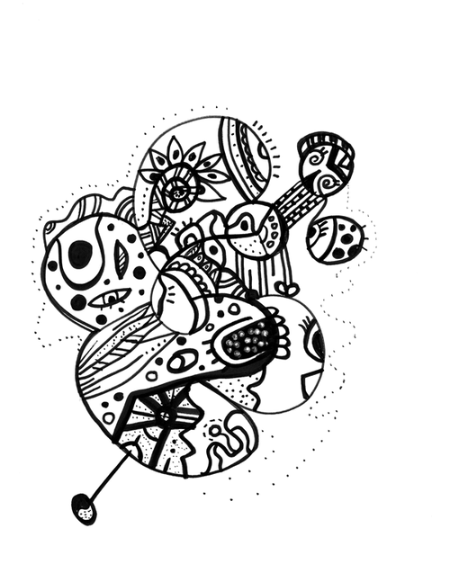 I always thought my love of color was the reason I painted but soon realized there could be adventure in simplicity. With this series I found a way to show imagination and imperfection with ink. The shapes and lines can become anything if you take a closer look.